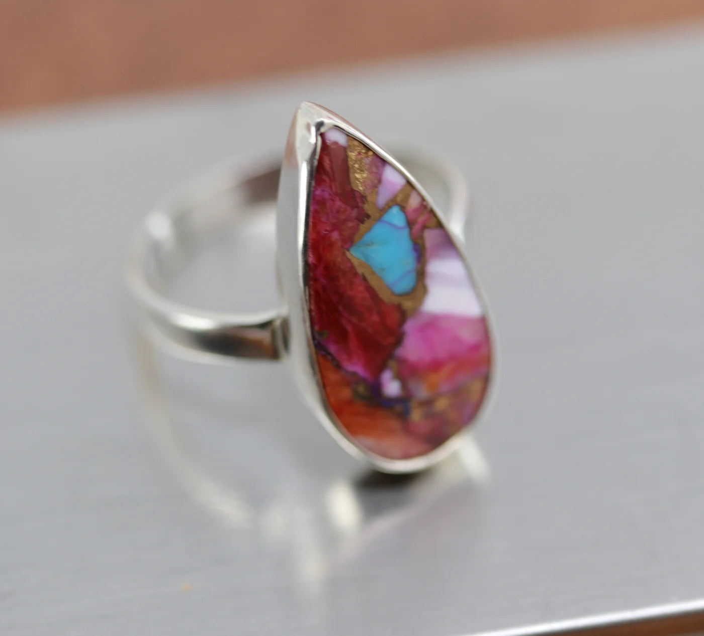 A beautiful Southwest Style gemstone ring made from sterling silver and mojave turquoise. The ring size is 10 and it is 1 1/8" in length.