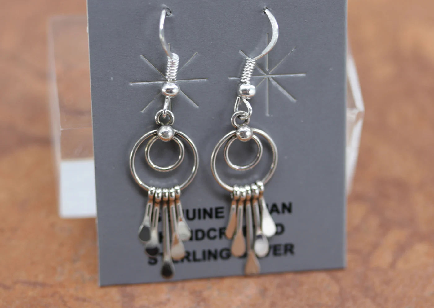 Beautiful Navajo earrings. They are made from sterling silver. Each earring is 1 3/4" in length including the hook and 1/2" in width.