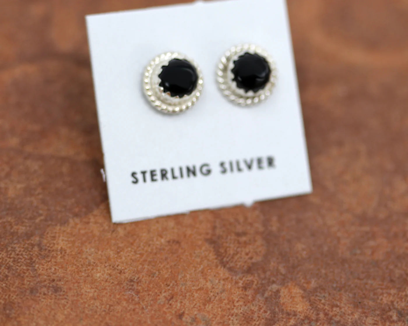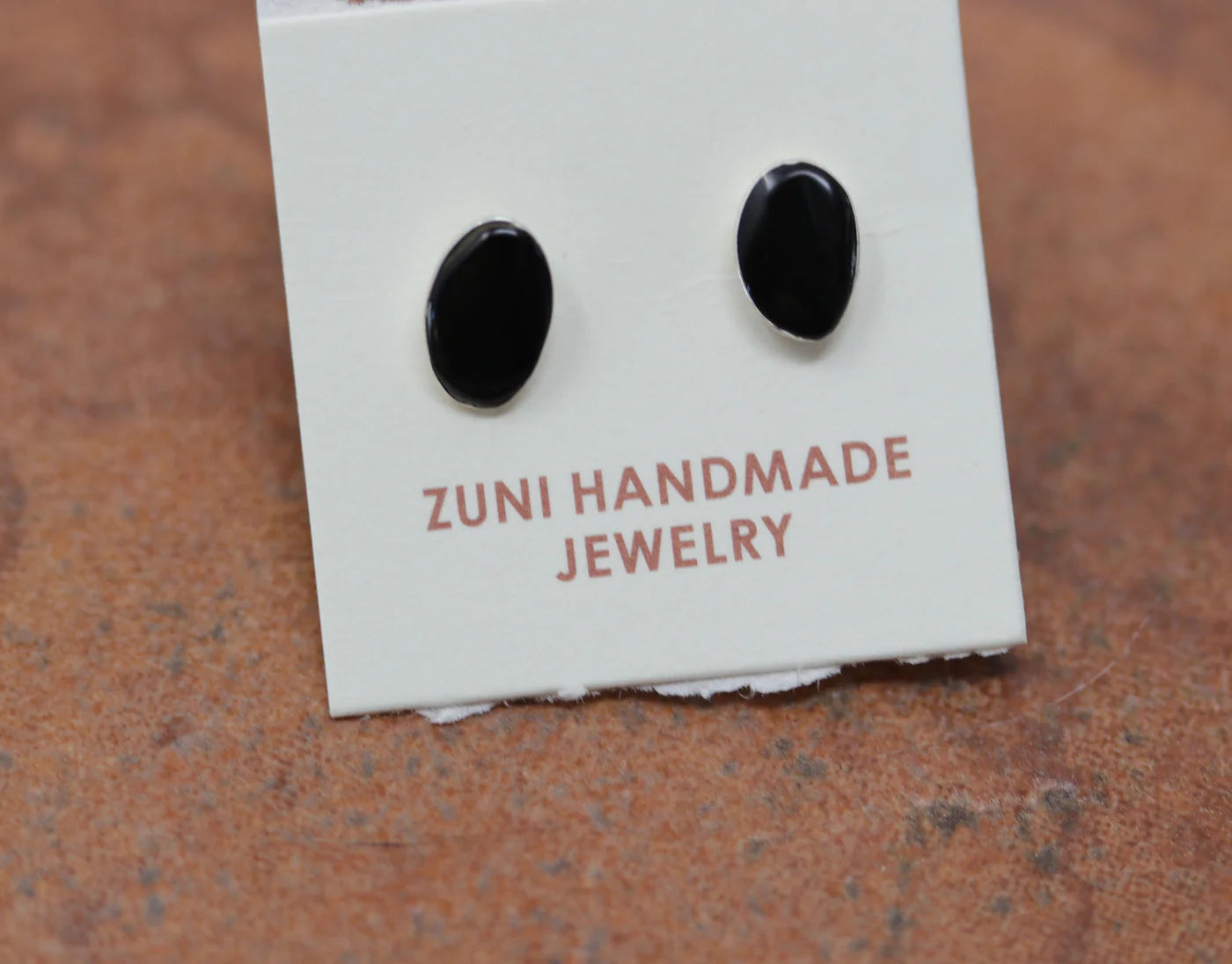 Sterling Silver Zuni Onyx Oval Stud Earrings