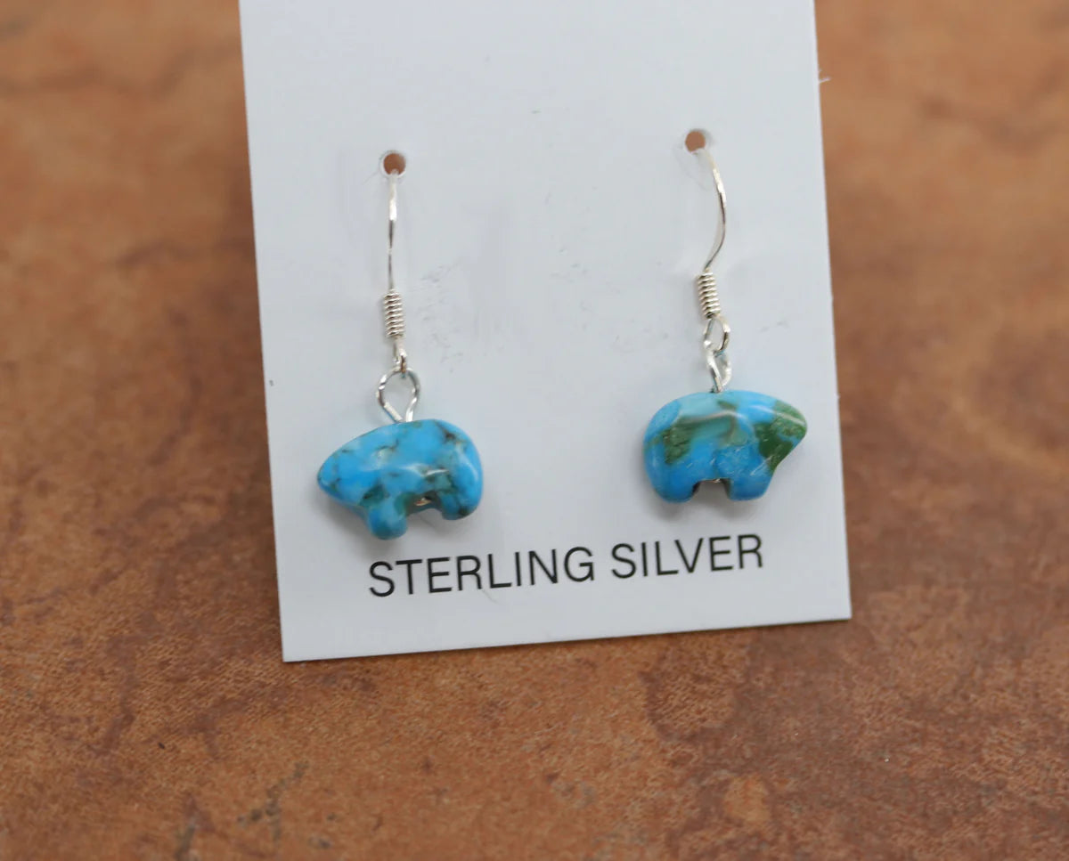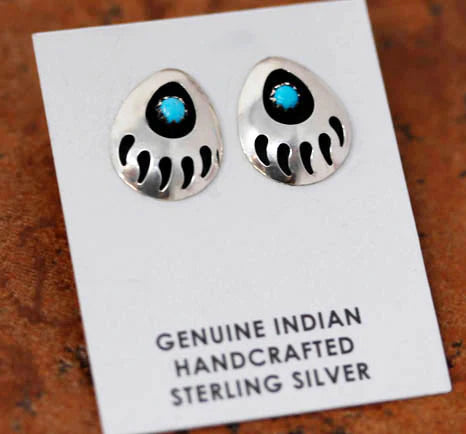 Sterling Silver Navajo Turquoise Bear Paw Earrings