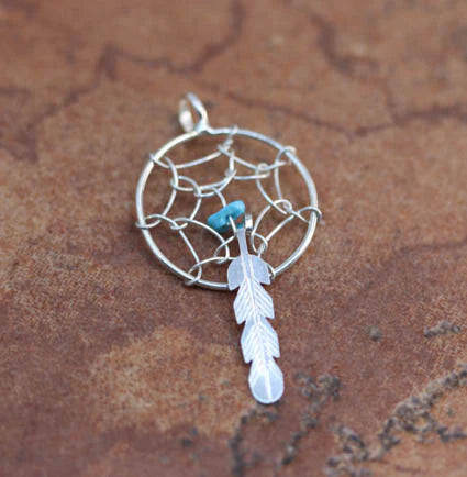 Sterling Silver Navajo Turquoise Dream Catcher Pendant