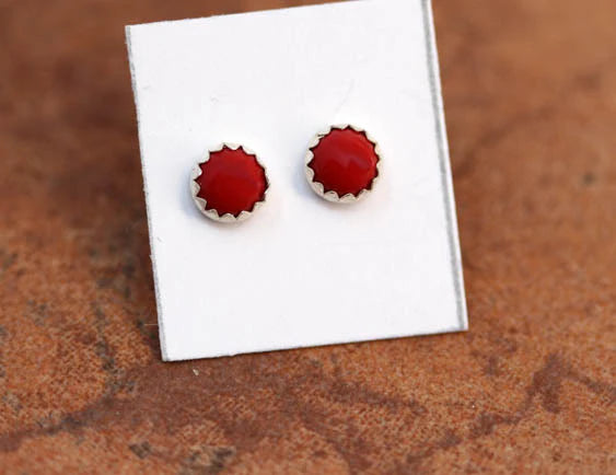 Sterling Silver Navajo Coral Bear Paw Earrings