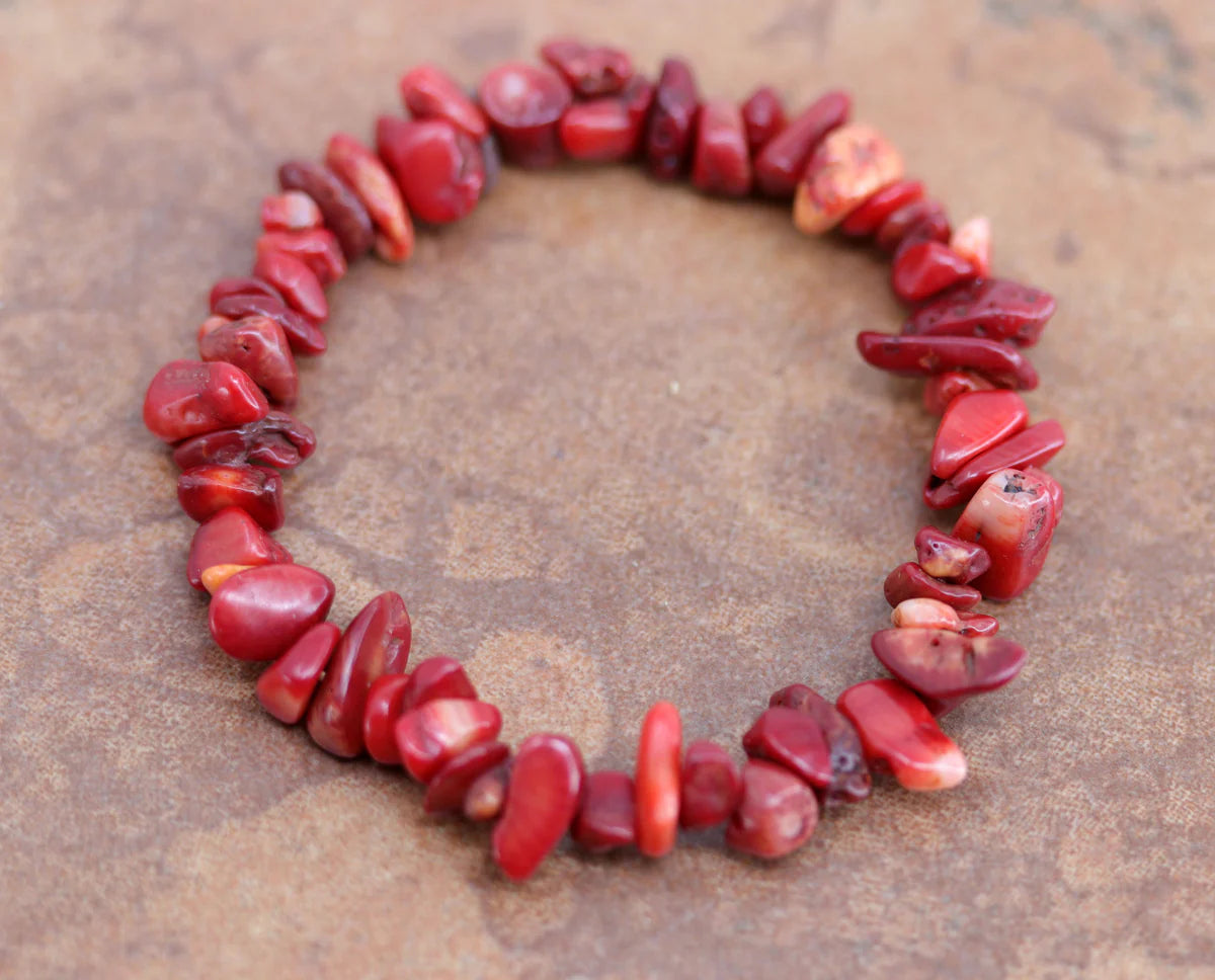Beaded Red Bamboo Coral Stretch Nugget Chip Bracelet