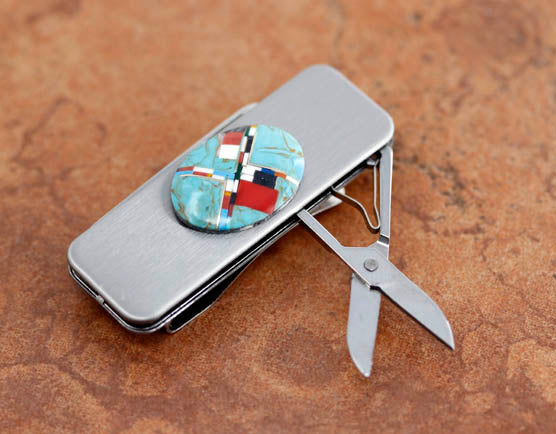 Sterling Silver Navajo Turquoise Coral Lighter Case
