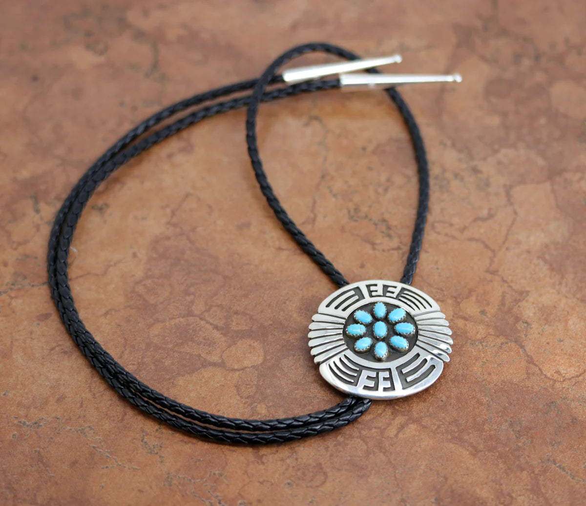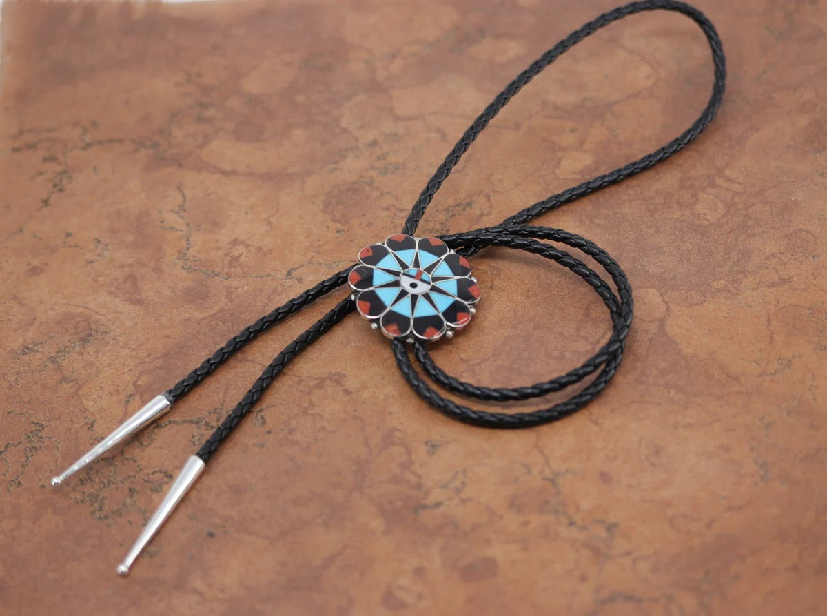 Sterling Silver Zuni Multi-Stone Sunface Bolo Tie