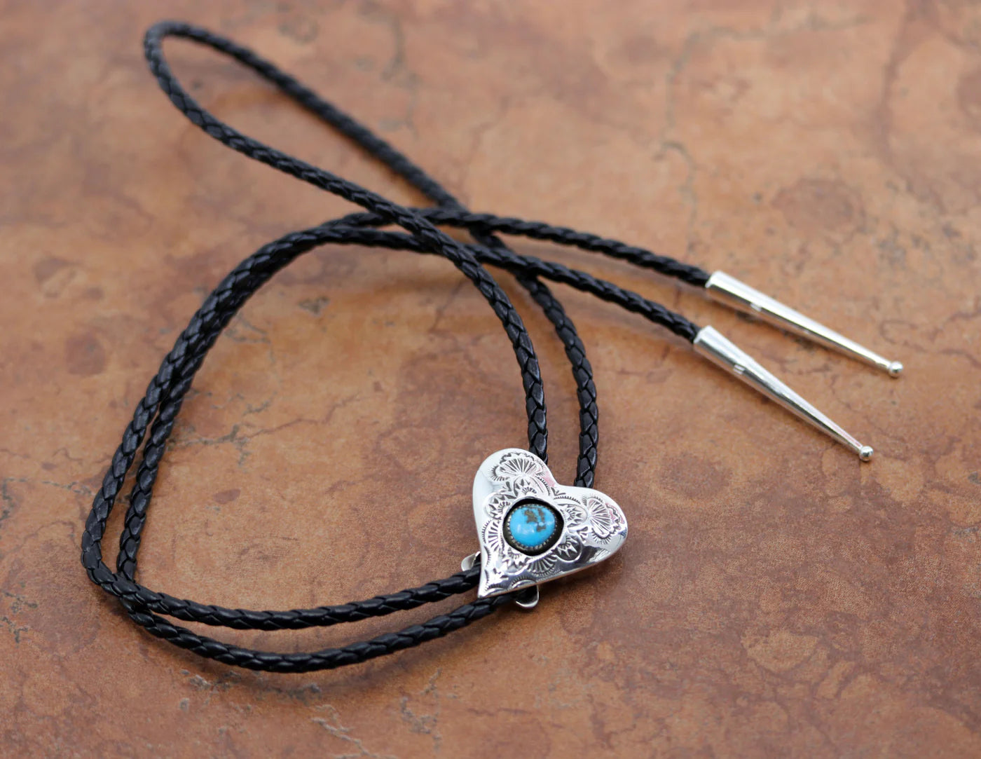 Sterling Silver Navajo Turquoise Heart Bolo Tie