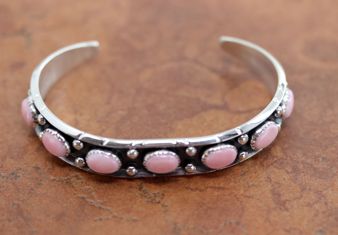 Sterling Silver Navajo Pink Coral Bracelet