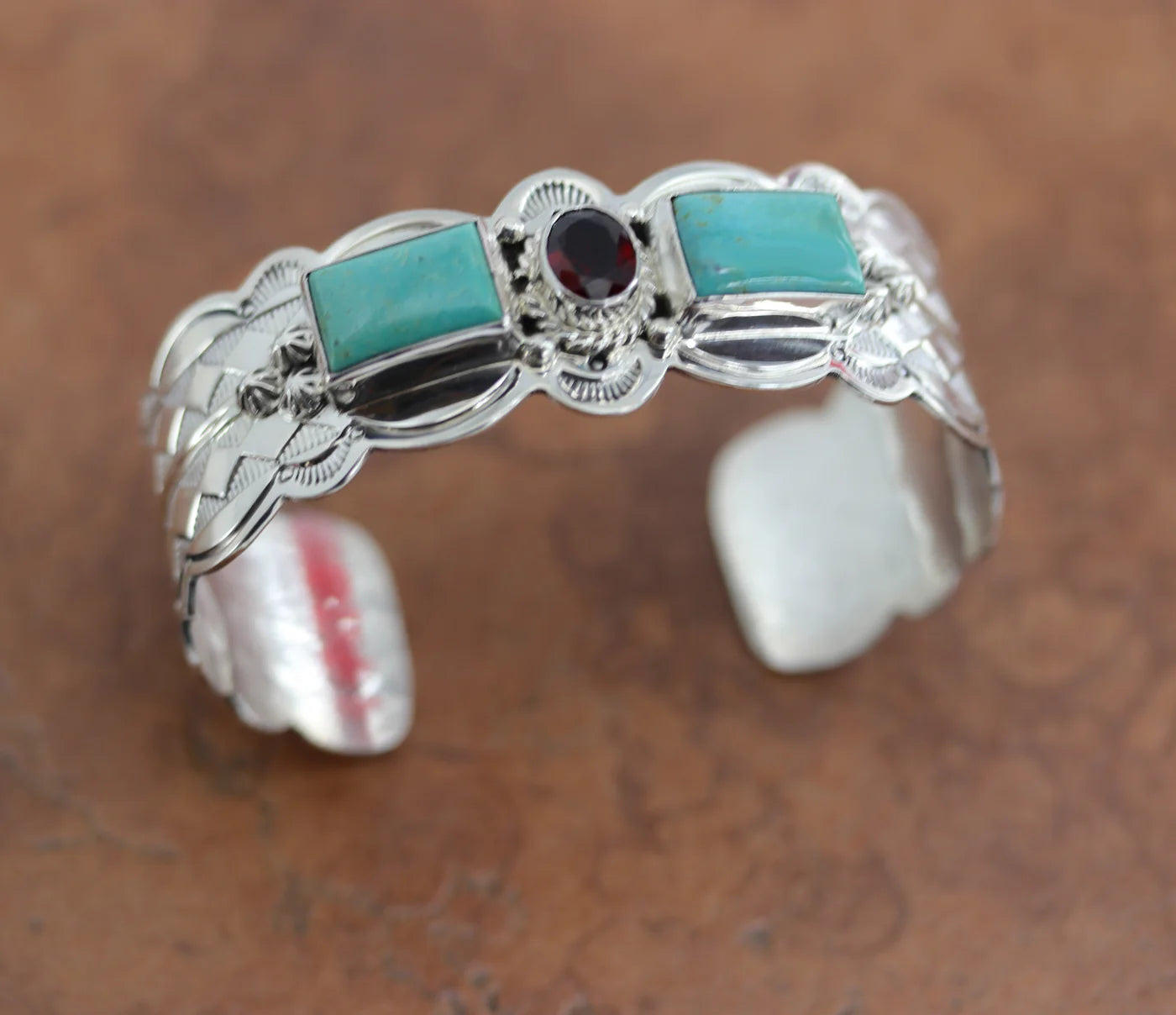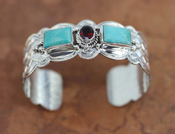 Sterling Silver Navajo Turquoise Garnet Bracelet