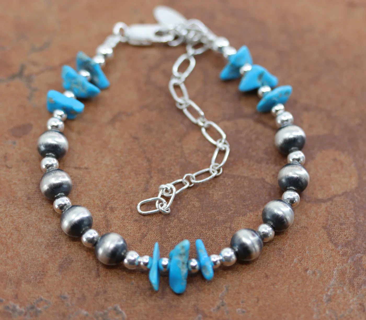 Sterling Silver Navajo Pearl Turquoise Bracelet