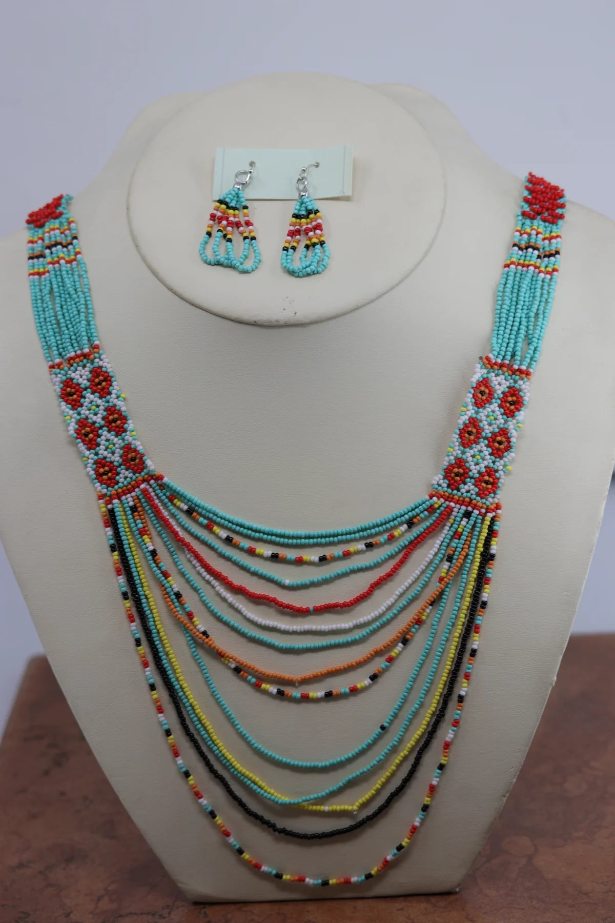 14 Strand Beaded Necklace Earrings Set