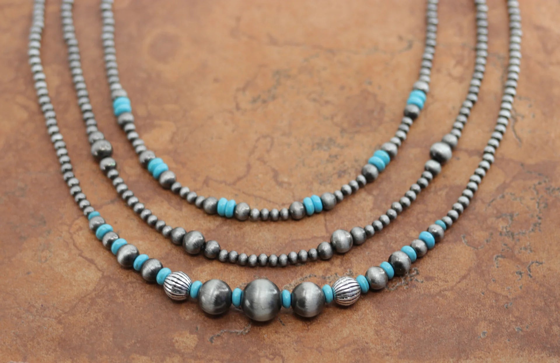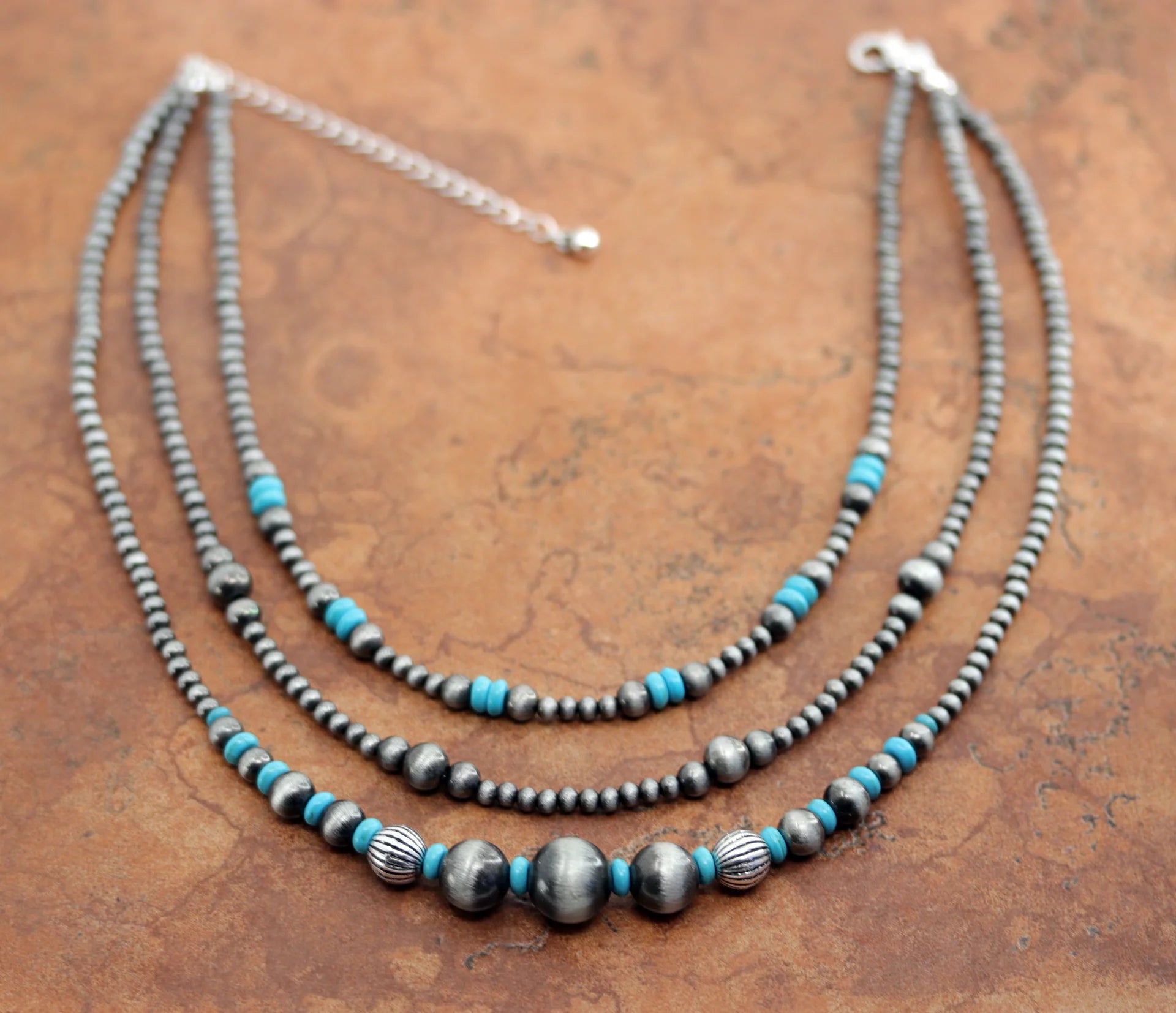 Cowgirl Pearl Style 3 Strand Turquoise Fashion Necklace