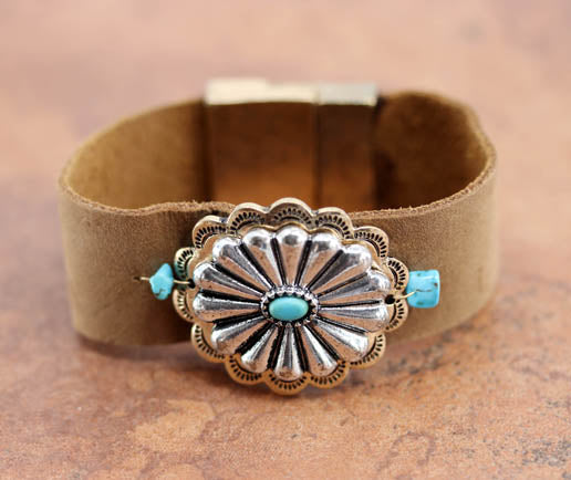Faux Leather Concho Bracelet