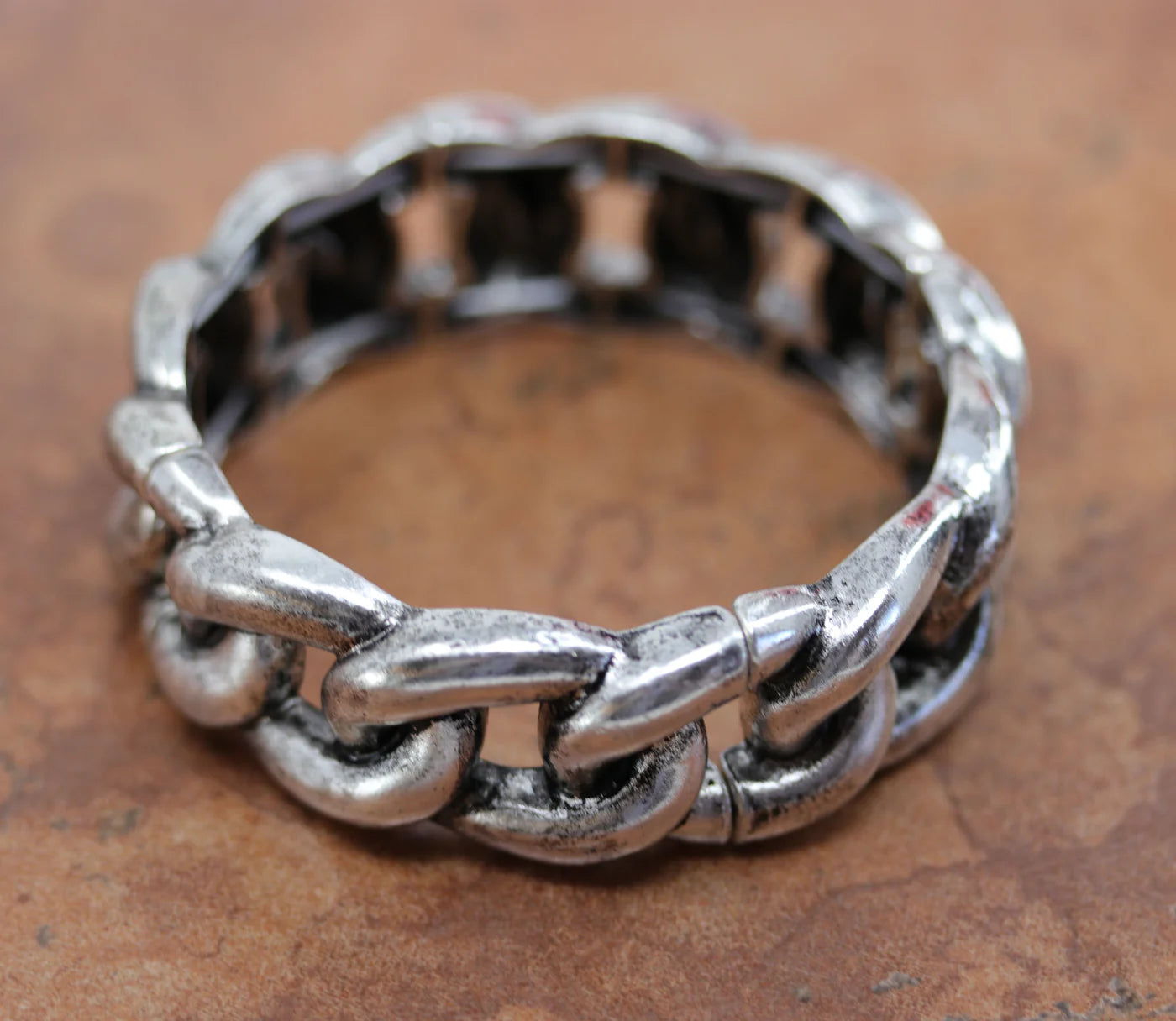 Beautiful stretch bracelet is made from Zinc Alloy. The bracelet is stretchy and the width is 1".