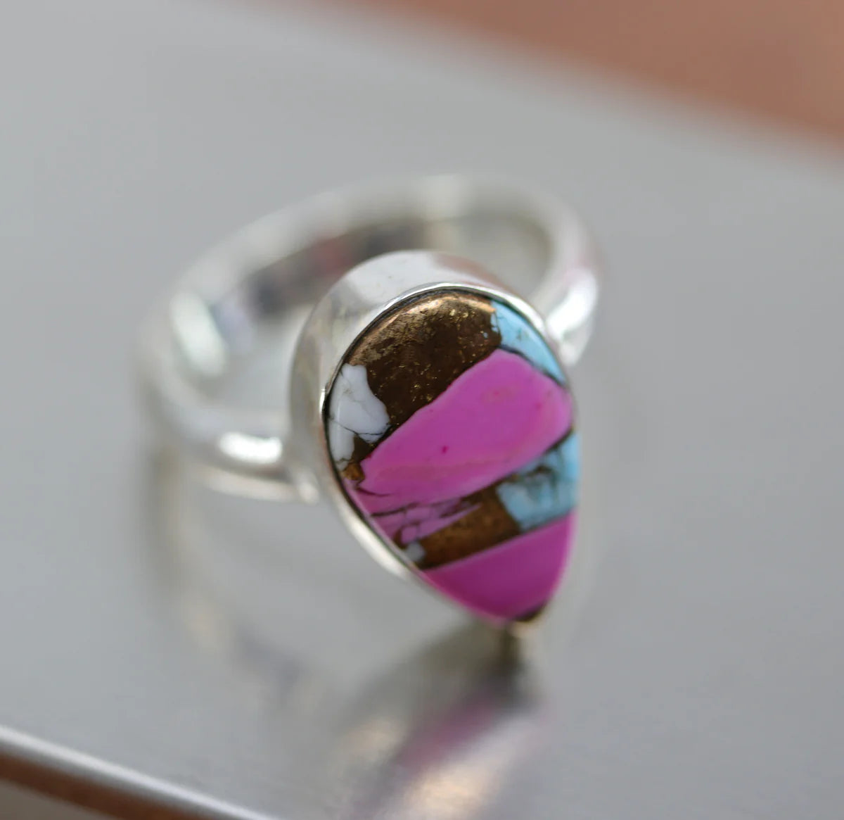 Sterling Silver Cotton Candy Dahlia Turquoise Ring Size 6 1/2