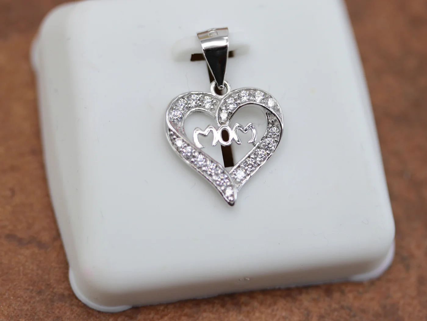 Sterling Silver Cubic Zirconia Mom Heart Pendant