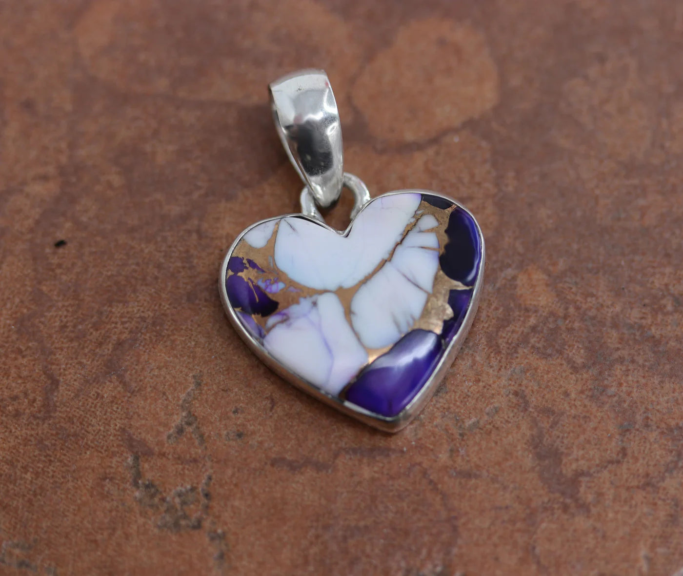 Sterling Silver Lavender Dahlia Turquoise Heart Pendant