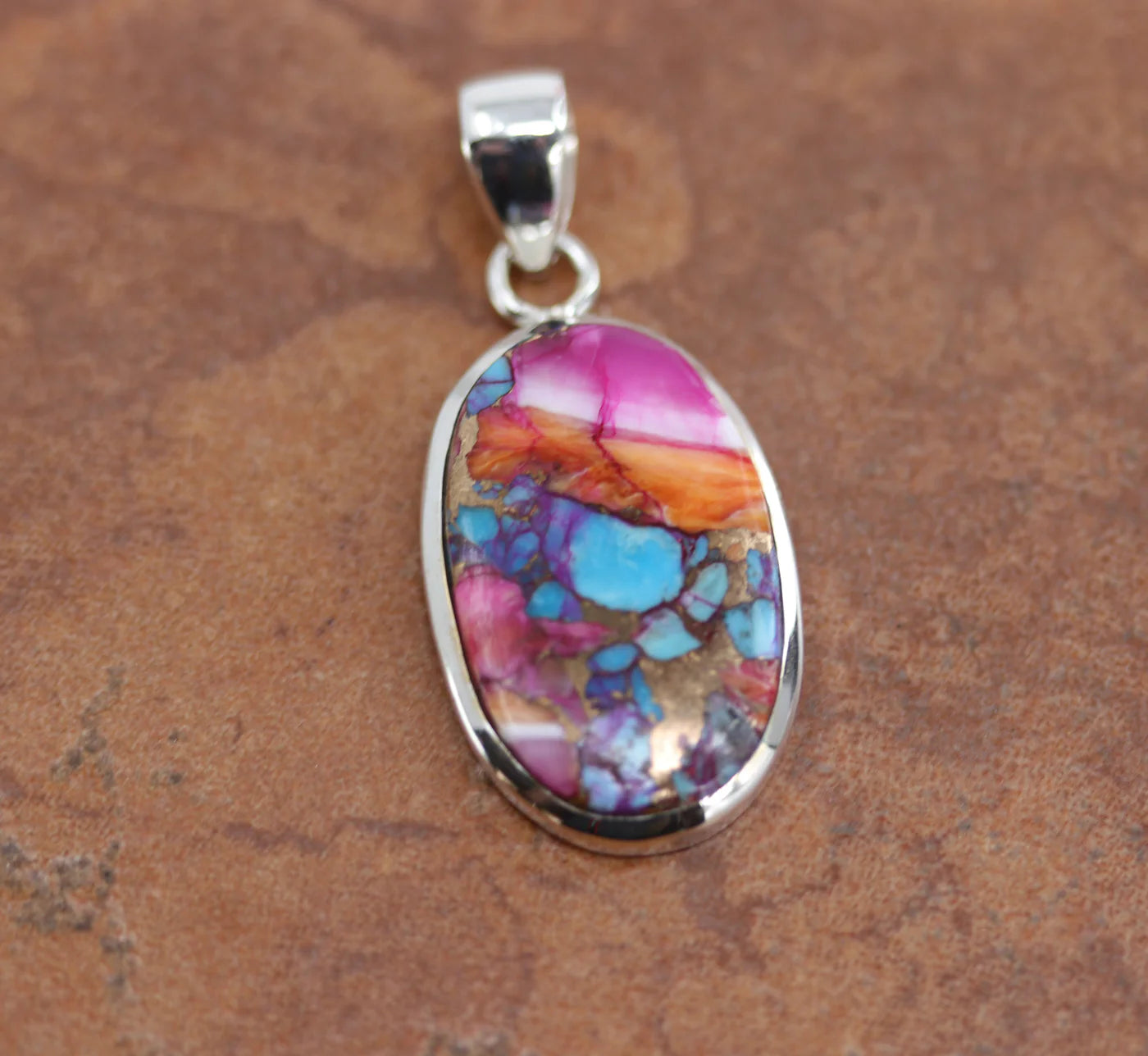 A beautiful pendant made from sterling silver and mojave turquoise. The pendant is about 1 7/8" in length including the hook, and 7/8" in width.