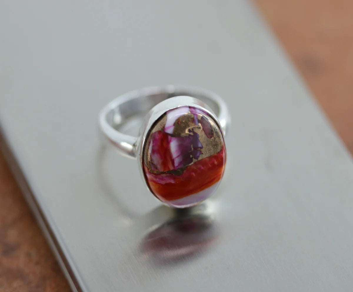 A beautiful Southwest Style gemstone ring made from sterling silver and mojave turquoise. The ring size is 6 1/2 and it is 3/4" in length.