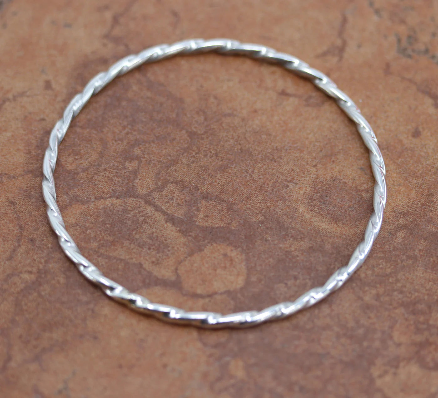 Beautiful Navajo Native American bracelet by Elaine Tahe. It is made from sterling silver. It is about 8" around and about 1/8" wide at the widest point.