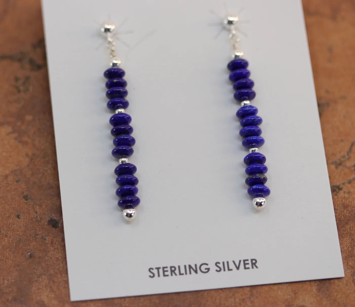 Sterling Silver Navajo Beaded Nugget Lapis Earrings