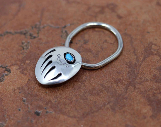 Sterling Silver Navajo Bear Paw Turquoise Key Chain