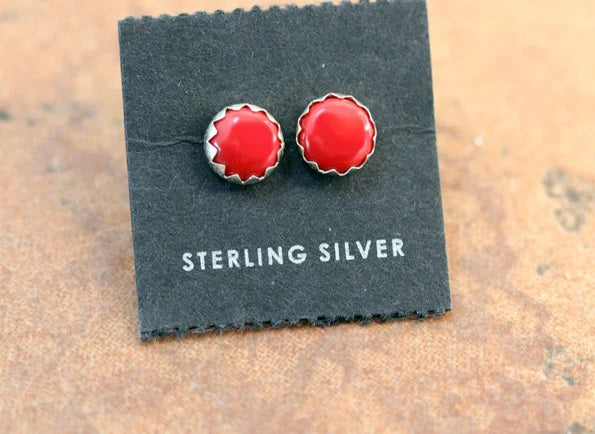 Brand new, very nice sterling silver earrings. They are made from sterling silver and coral. The earrings are about 5/16" in diameter.