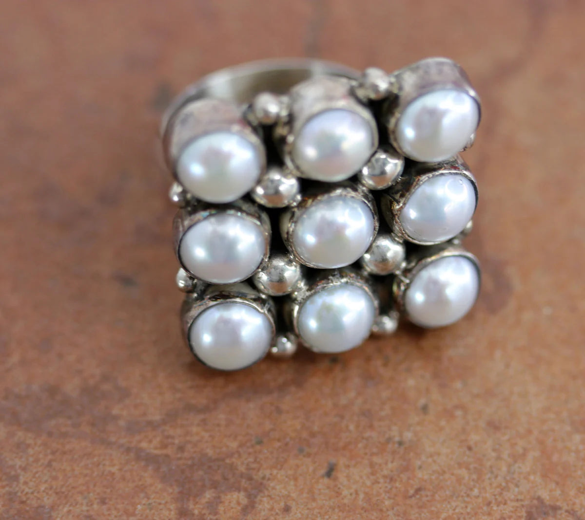 Sterling Silver Navajo Freshwater Pearl Ring Size 6-8