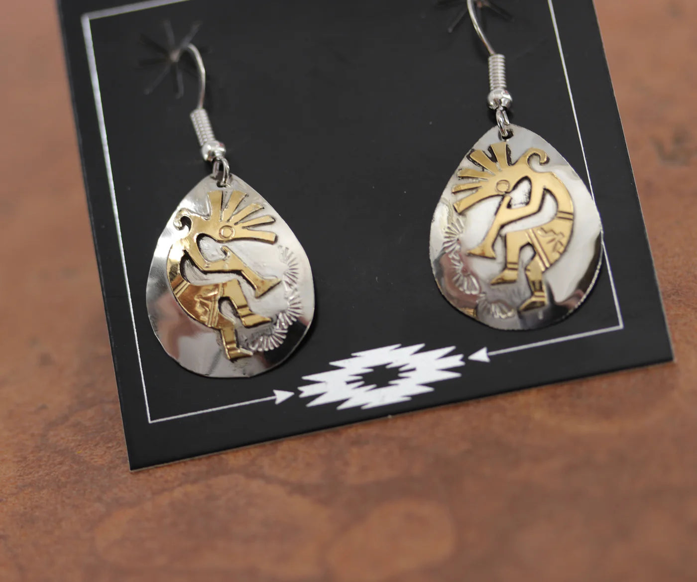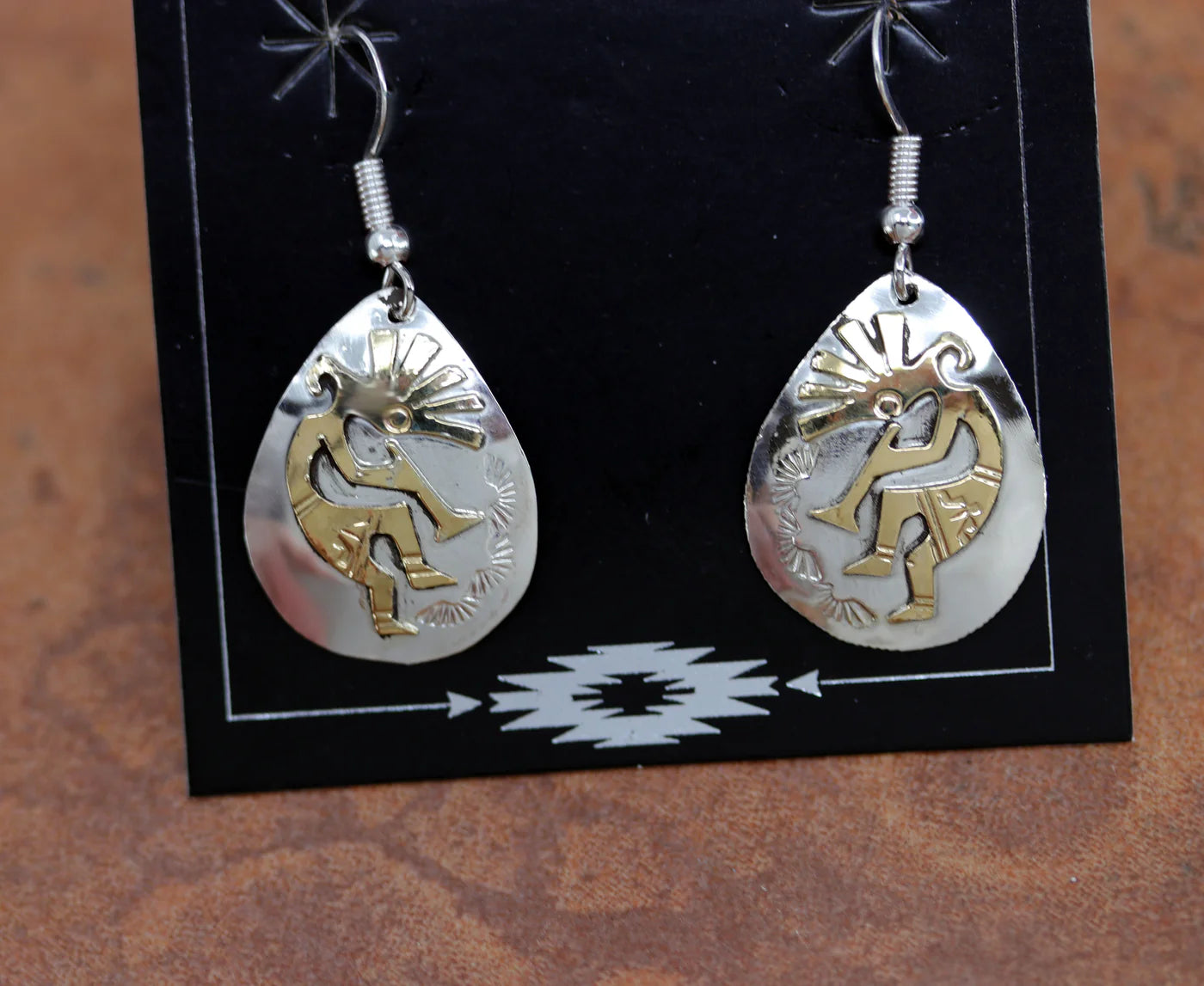 Sterling Silver Navajo Gold Overlay Kokopelli Earrings