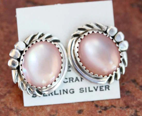 Sterling Silver Navajo Mother of Pearl Earrings by Cadman