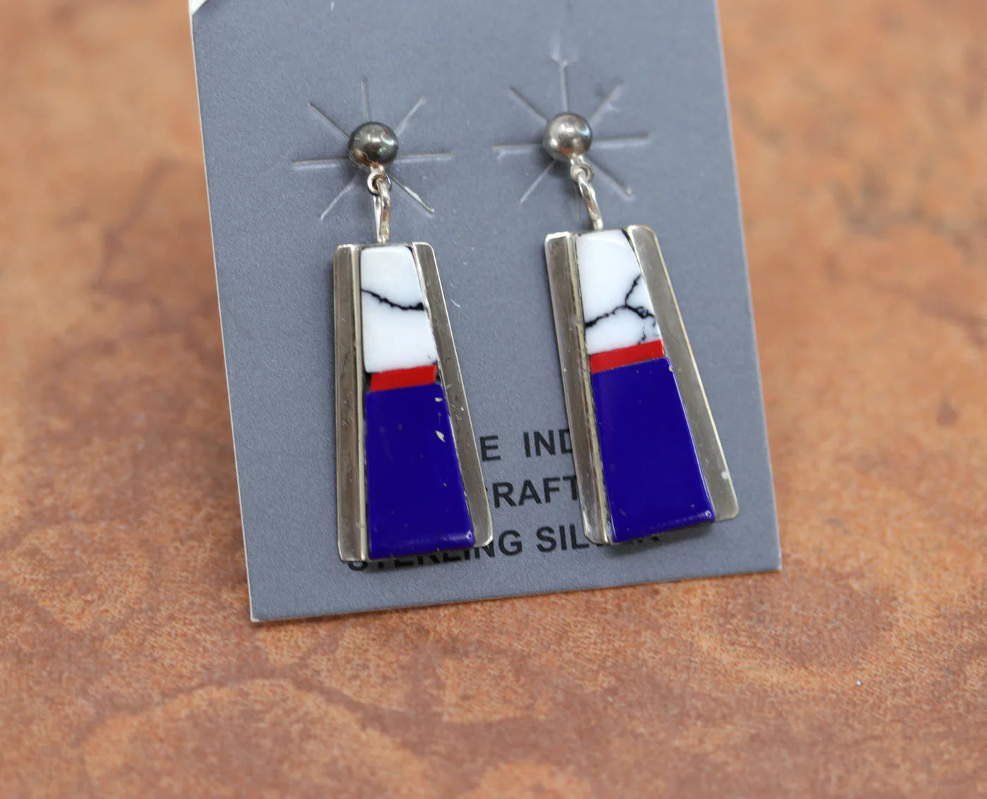 Sterling Silver Navajo Multi-Stone Lapis Earrings