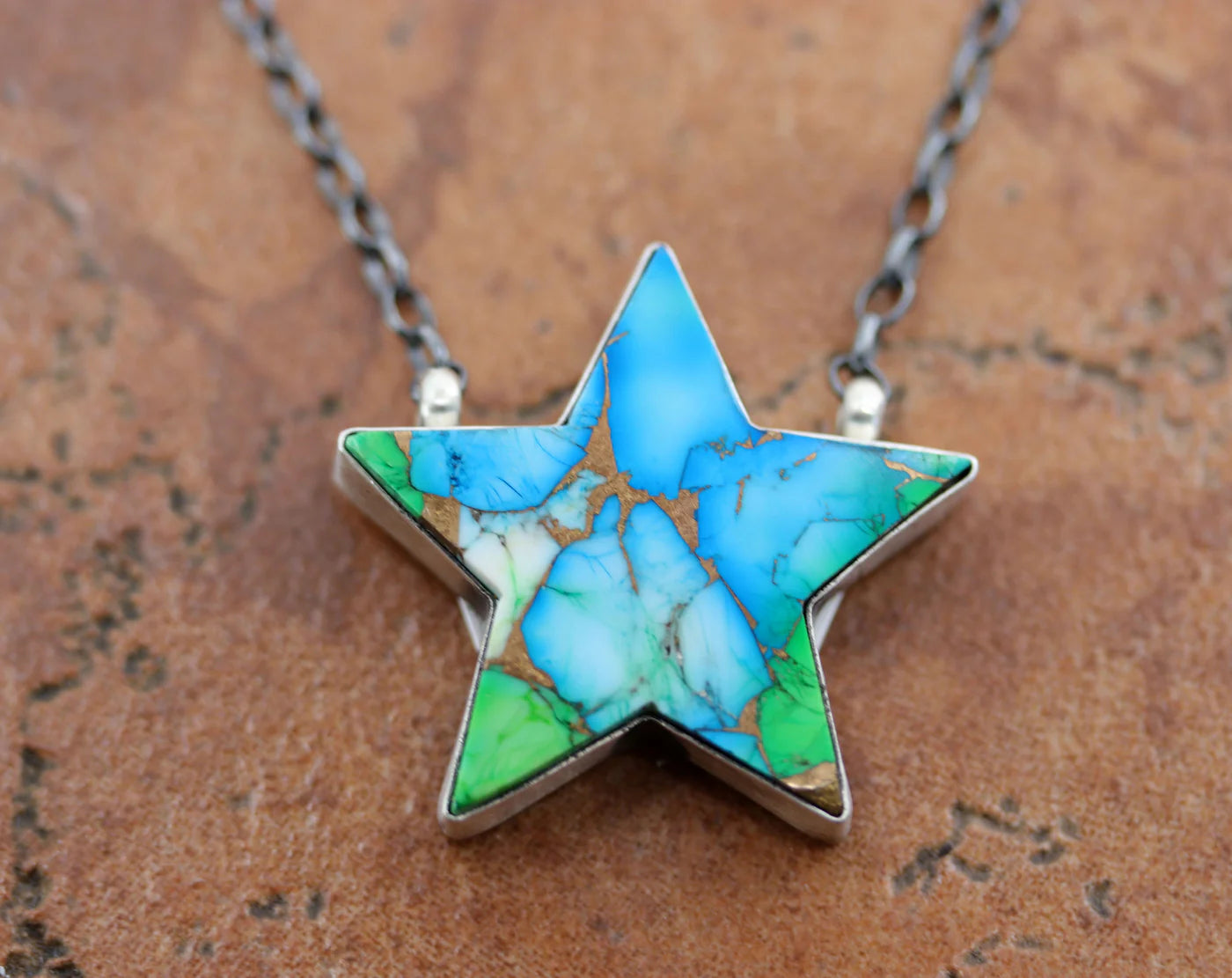 Sterling Silver Navajo Peacock Dahlia Turquoise Star Choker Necklace