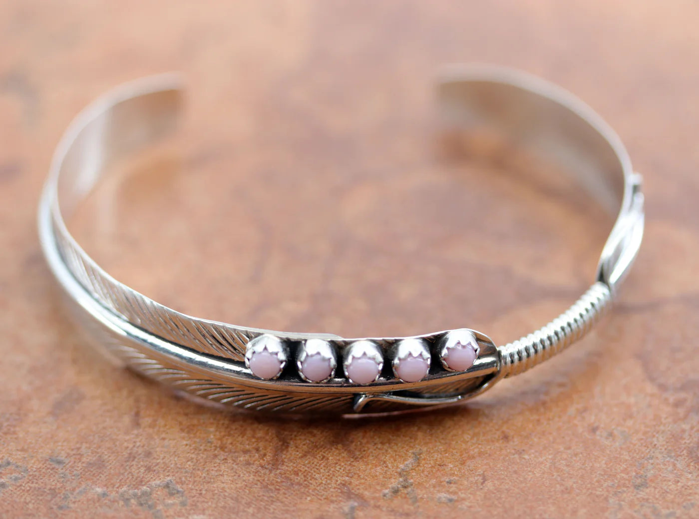 Sterling Silver Navajo Pink Coral Feather Cuff Bracelet