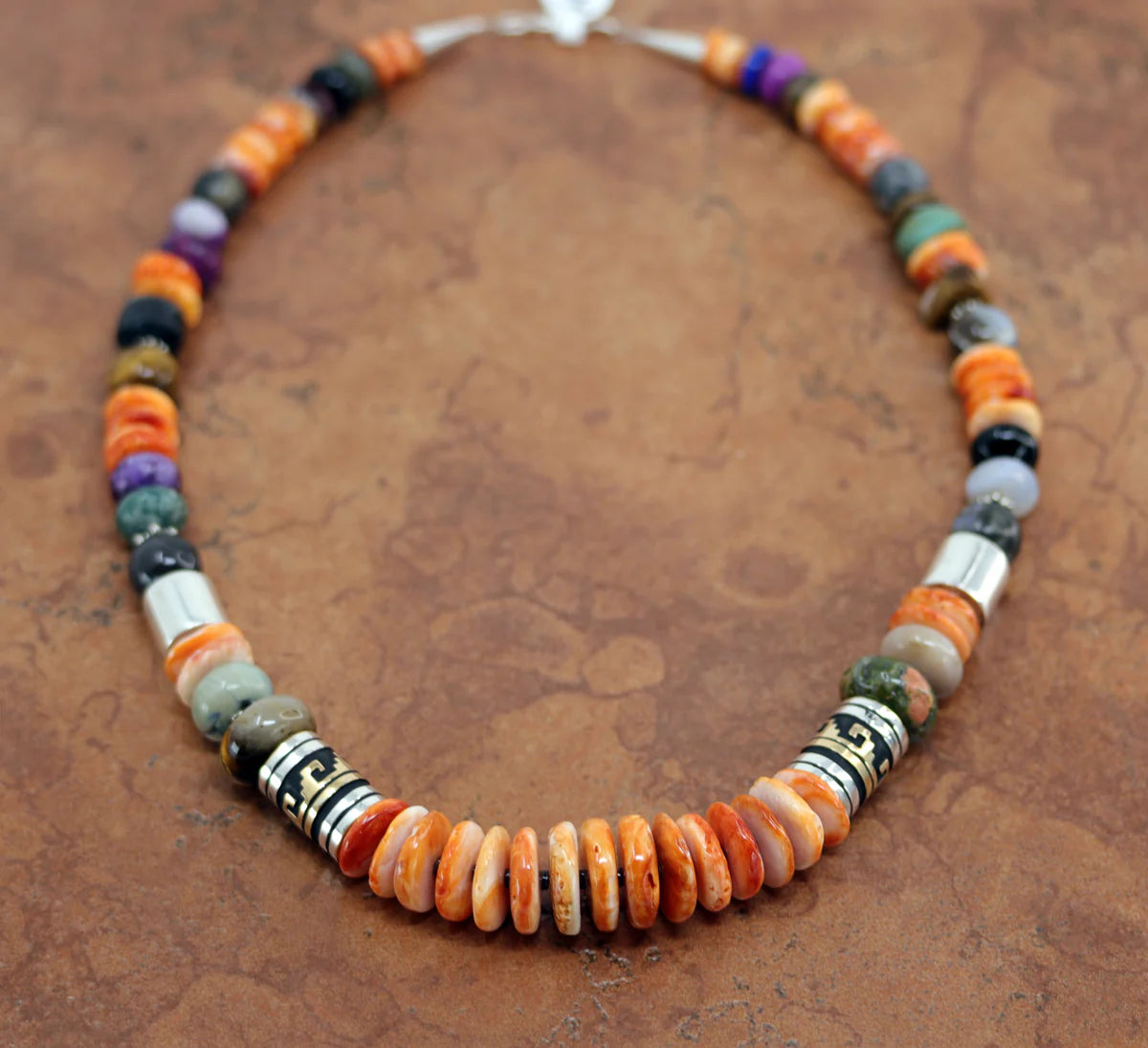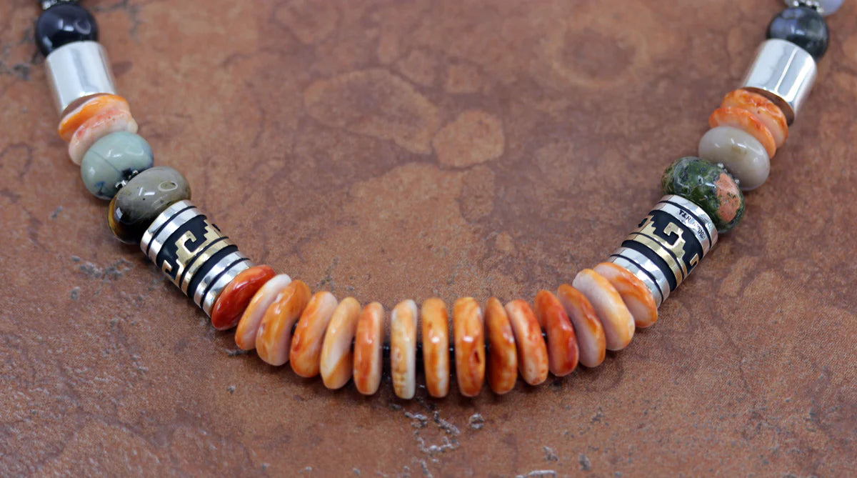 Sterling Silver Navajo Spiny Oyster Necklace By Singer