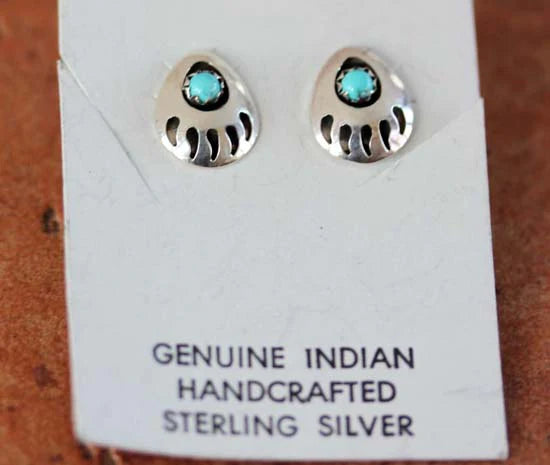 Sterling Silver Navajo Turquoise Bear Paw Earrings