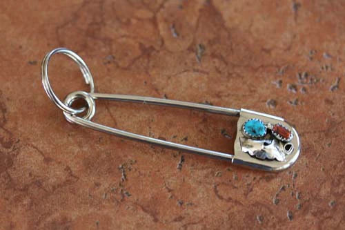 Sterling Silver Navajo Turquoise Coral Key Chain