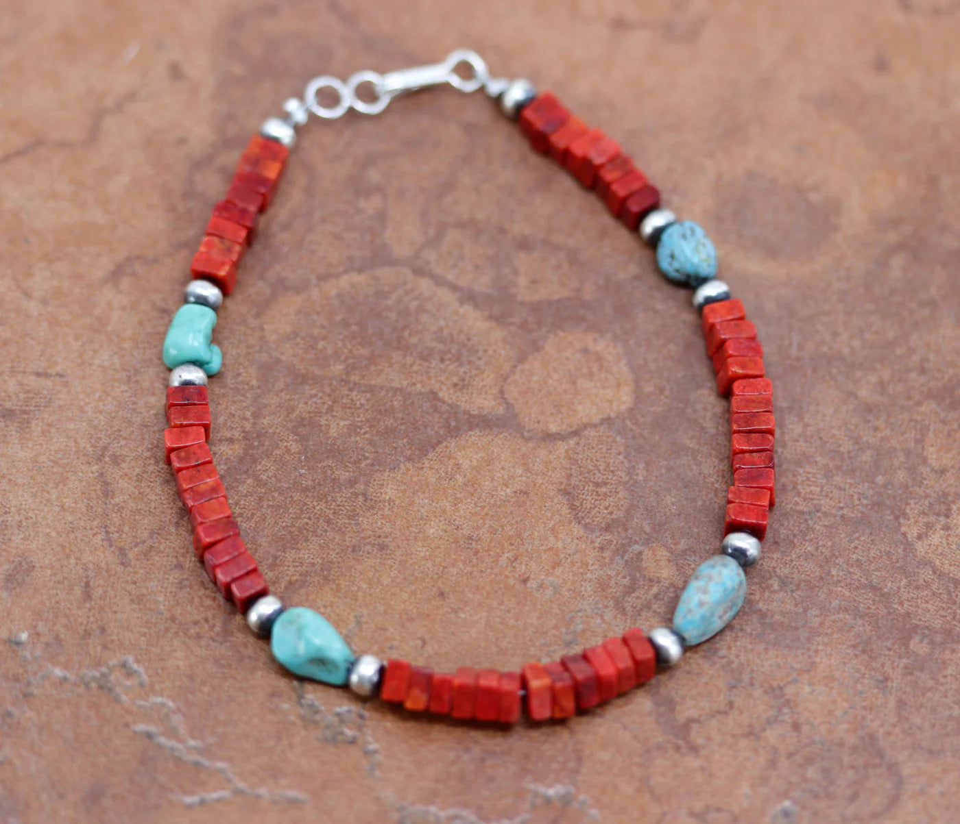 Sterling Silver Navajo Turquoise Coral Nugget Bracelet