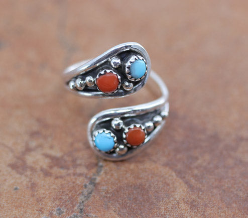 Sterling Silver Navajo Turquoise Coral Spoon Ring Size 6-9