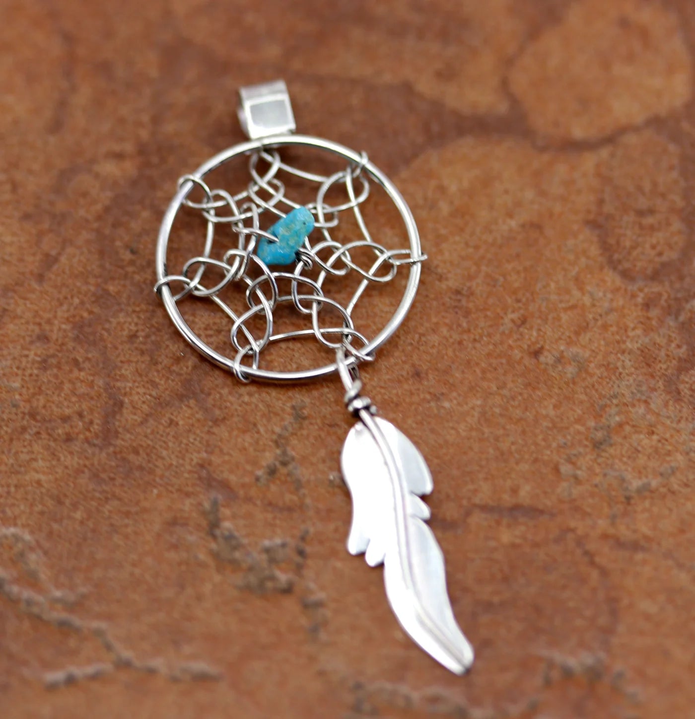 Sterling Silver Navajo Turquoise Dream Catcher Pendan