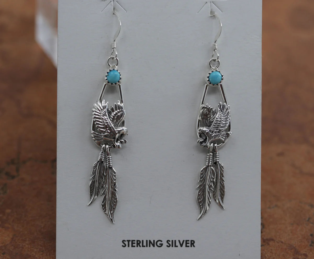 Sterling Silver Navajo Turquoise Eagle Earrings