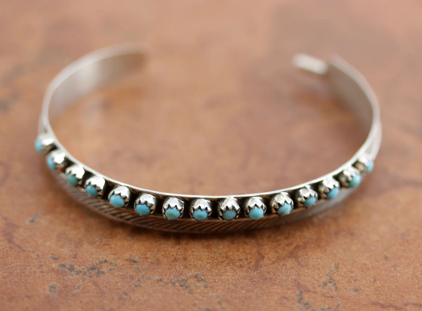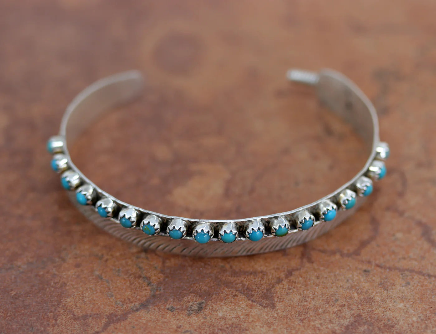 Sterling Silver Navajo Turquoise Feather Bracelet