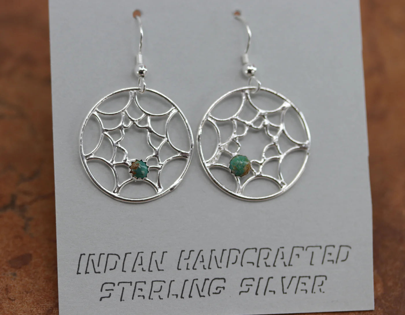 Sterling Silver Navajo Turquoise Spider Web Earrings