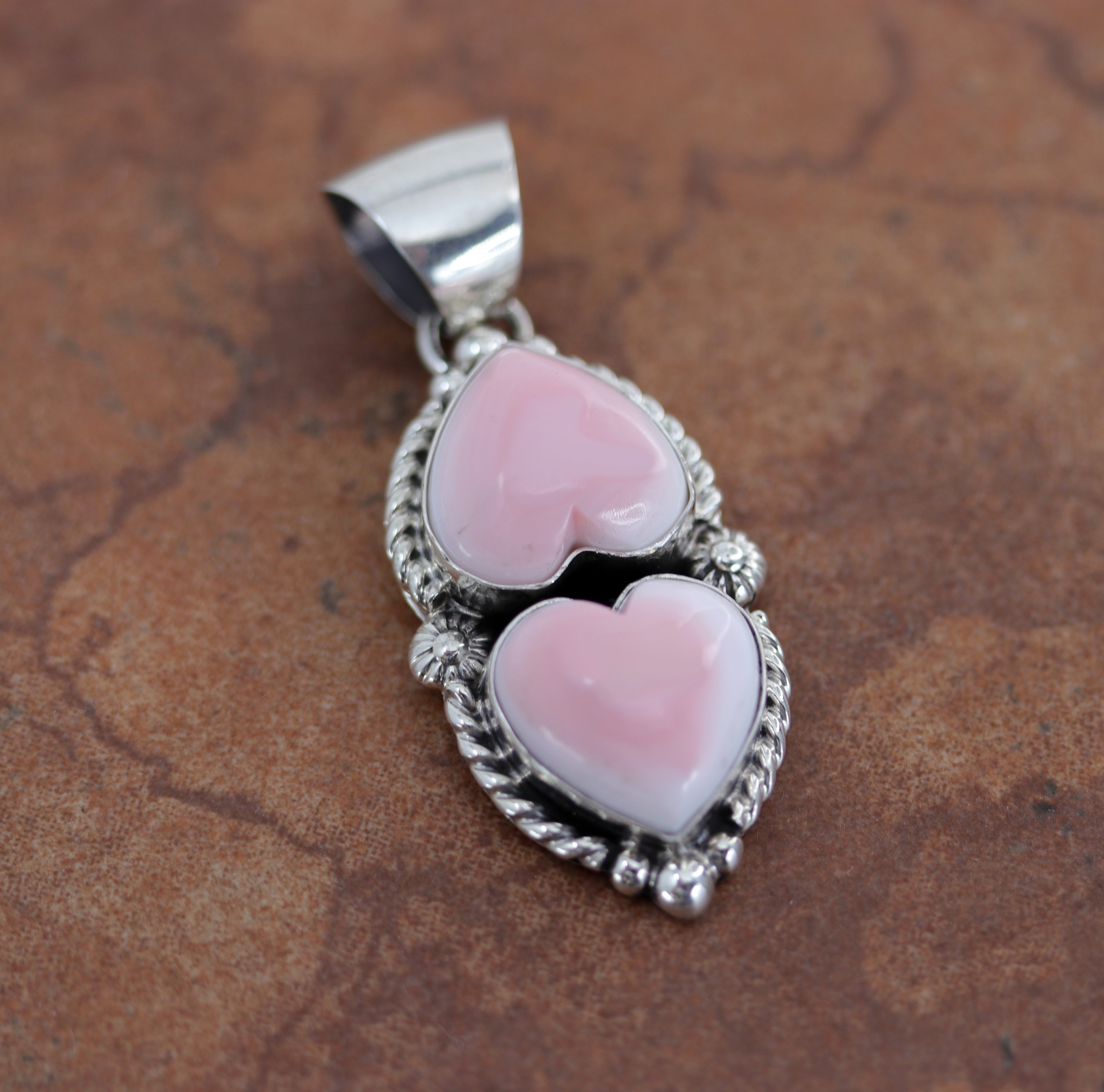 A beautiful Navajo Native American Pendant by Robert Shakey. It is made from sterling silver and pink conch. The pendant is about 2 1/8" in length and about 7/8" in width.
