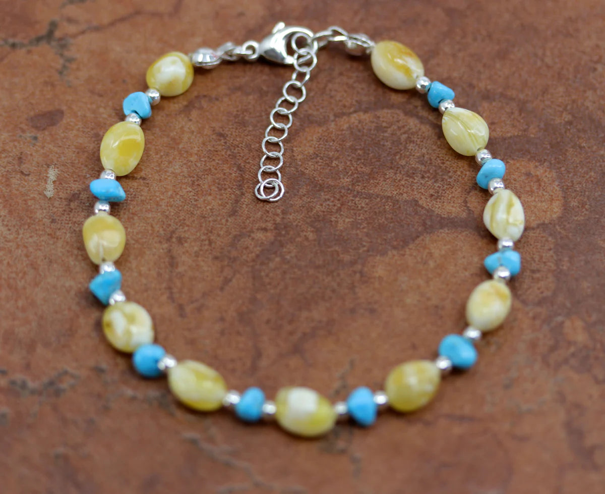 Sterling Silver Turquoise Baltic Amber Clasp Bracelet