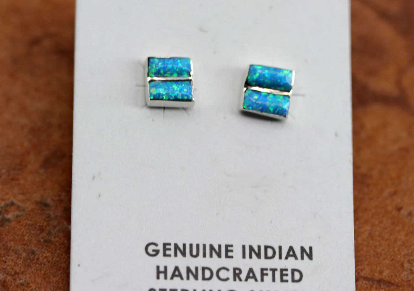 Sterling Silver Zuni Created Opal Earrings