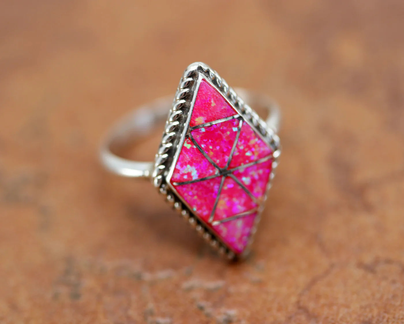 Sterling Silver Zuni Pink Created Opal Ring Size 5 1/2