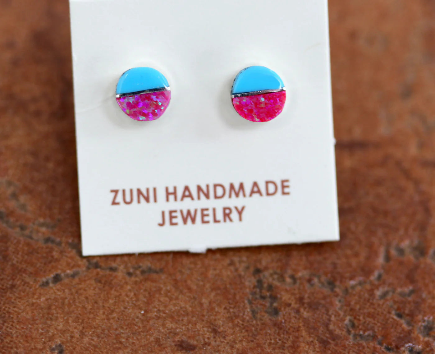 Sterling Silver Zuni Pink Created Opal Turquoise Earrings