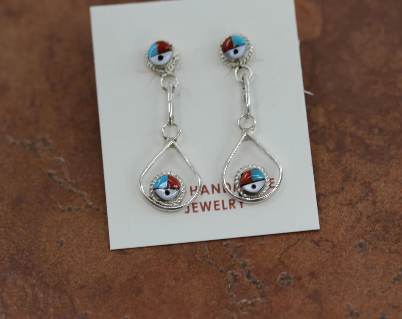 Brand new, very nice, Zuni Native American earrings. They are made from sterling silver and multi-stone inlay. The earrings are about 1 1/2" in length and 1/2" in width.