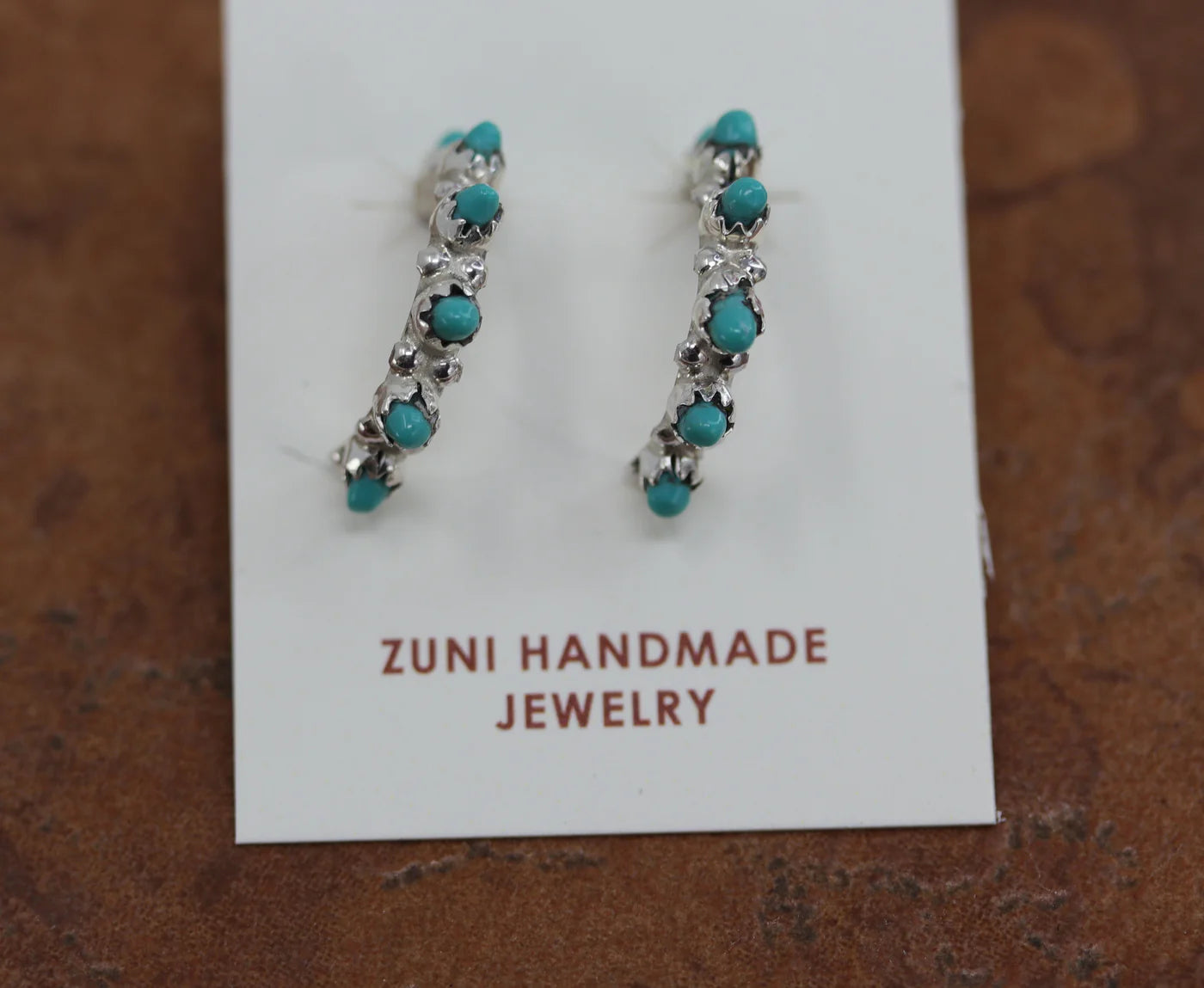 Sterling Silver Zuni Turquoise Hoop Earrings