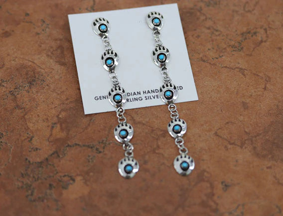Sterling Silver Navajo Turquoise Bear Paw Earrings