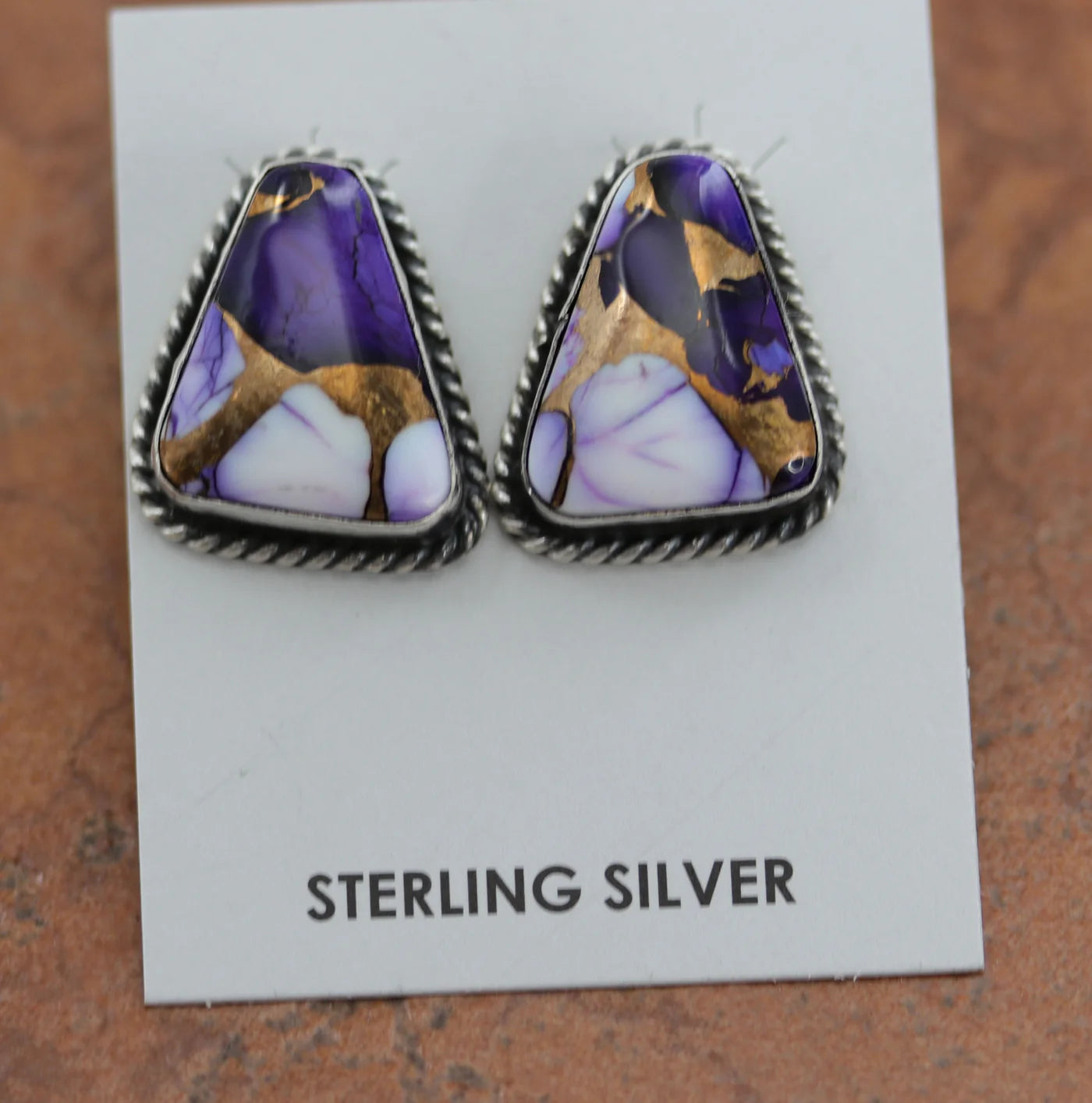 Sterling Silver Navajo Lavender Dahlia Turquoise Earrings